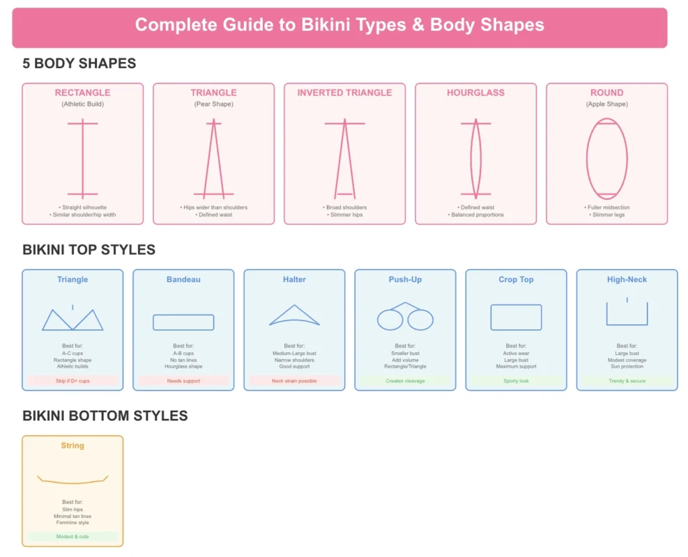 You now have comprehensive information about bikini types and how they work with different body shapes. You understand construction, quality, fit, and care. You know what to look for and what to avoid.
